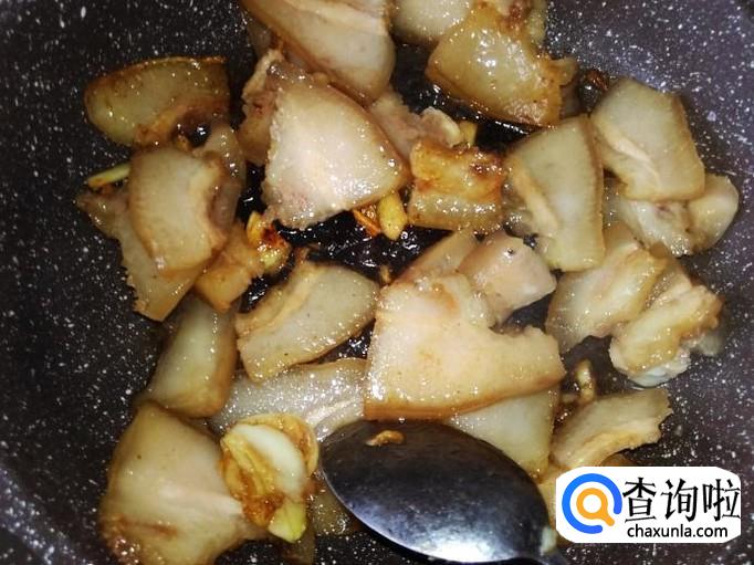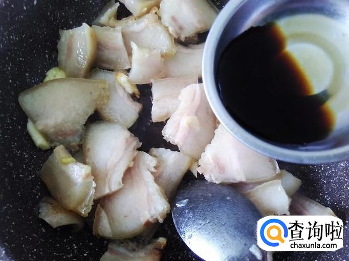 然后加2勺生抽,1勺料酒大火翻炒1分钟左右。
