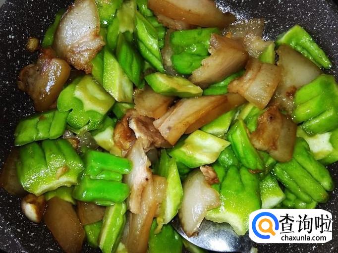焖到水份干完,熄火。非常浓香好吃的苦瓜焖猪头皮就做好了。