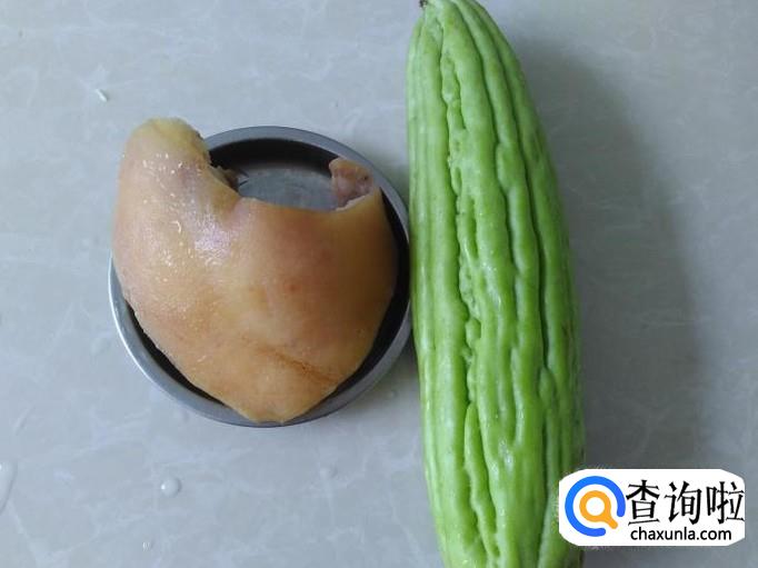 苦瓜1个,猪头皮200克,蒜米适量,2勺生抽。