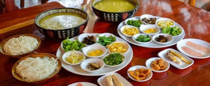 相传清朝时滇南蒙自城外有一湖心小岛,一秀才到岛上读书,娘子送饭偶然发现鸡汤上的浮油能保持汤的温度,于是将配料切薄,到岛上后用滚鸡汤烫熟,之后加入米线,鲜香滑爽。因上岛要过桥称作过桥米线,这就是流传最广的过桥米线的来历。