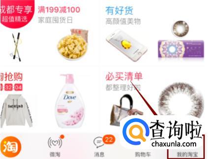 打开手机淘宝APP,点击右下角的我的淘宝。