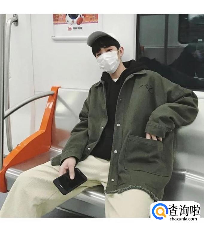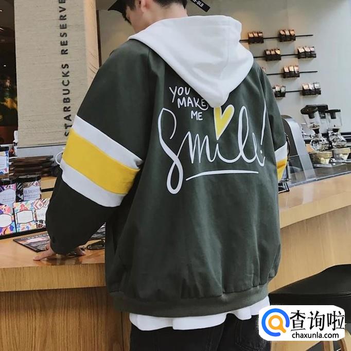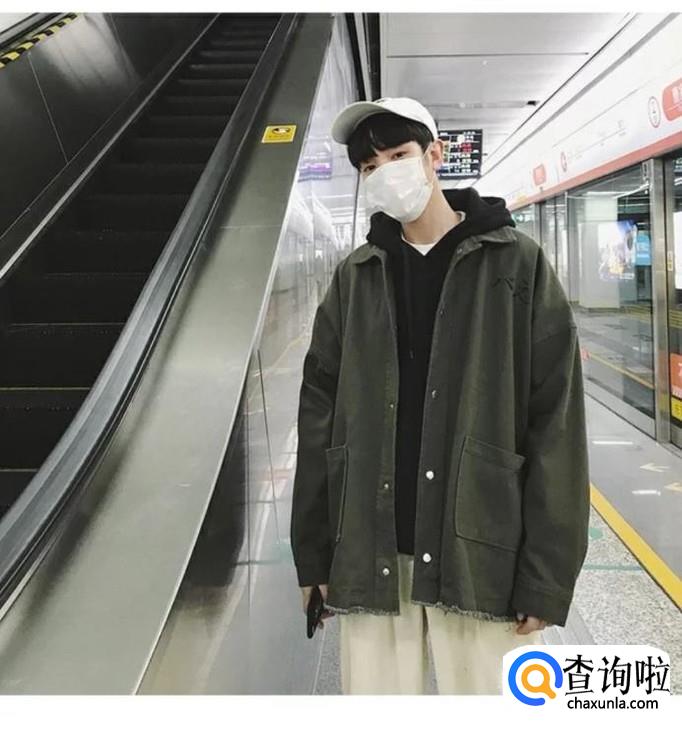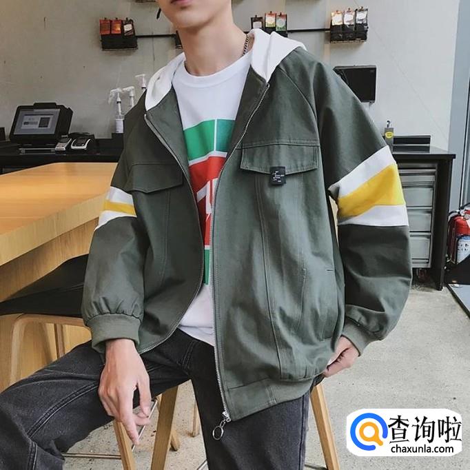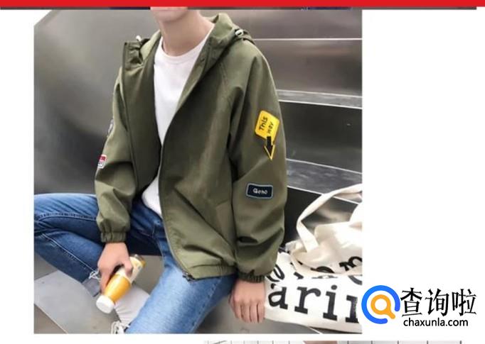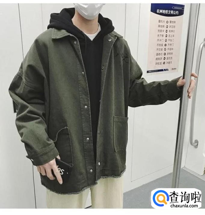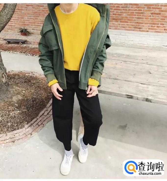 军绿色外套搭配白色印花T-shirt/白色卫衣及黑色牛仔裤,帅气又时尚。
