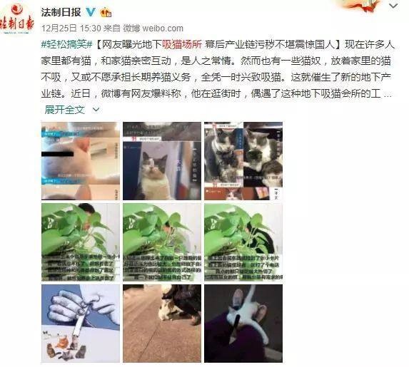 源自法制日报的官方微博曝光了一组非法地下吸猫组织,尺度之大,举国哗然!