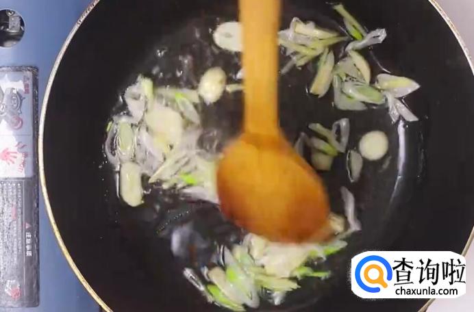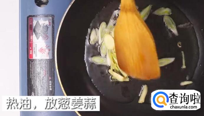 锅里放入适量的油,将油烧热后,放入葱姜蒜进行翻炒。