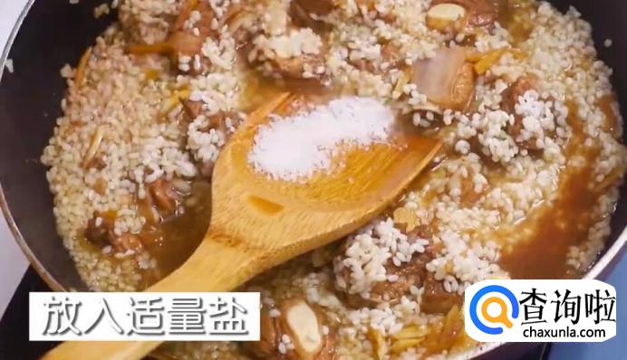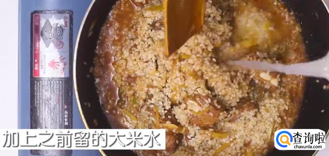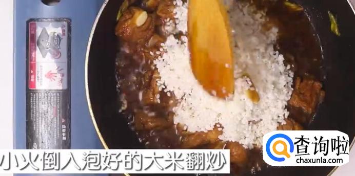 小火倒入泡好的大米进行翻炒。