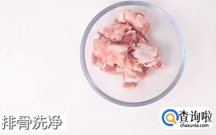将切好的排骨放入清水中洗干净。