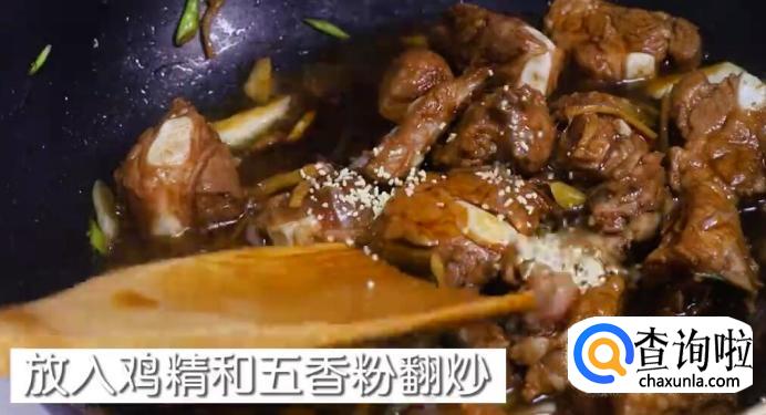 再加入鸡精和五香粉进行翻炒。