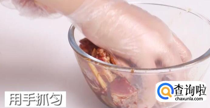 用手将所有的调料与排骨抓匀。