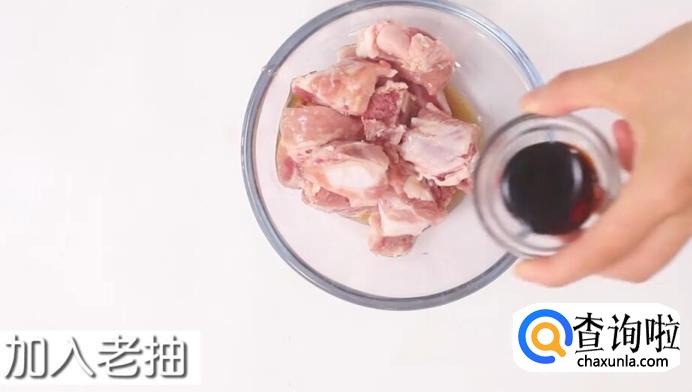 将洗好的排骨,加入料酒和老抽。