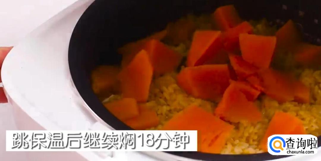 在米饭的上面铺上南瓜。