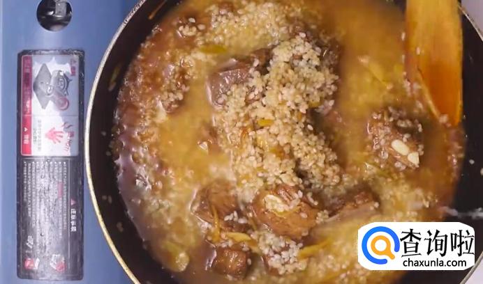 再加上之前留的大米水,将其煮沸腾。