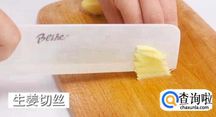 再将生姜切丝。