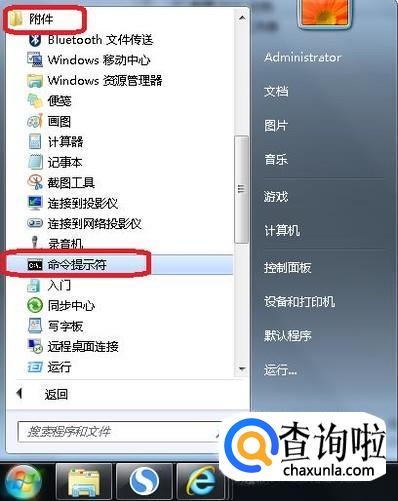 然后在附件中找到“命令提示符”,点击就能打开DOS窗口。