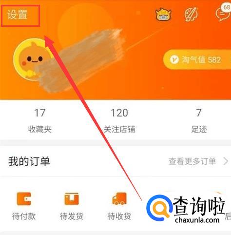 打开我的淘宝,点击左上角设置。