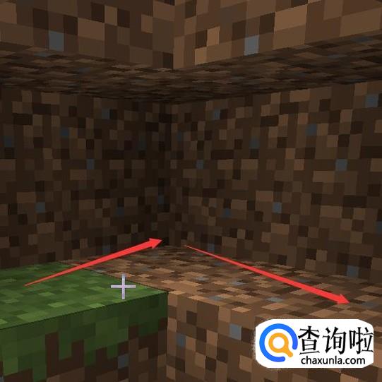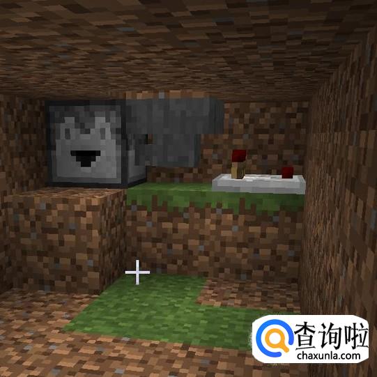 粘性活塞是推出状态,粘性活塞对着的口就是我们的家门口了。我们顺着这个口向下挖,地下的所有区域都可以建家了。