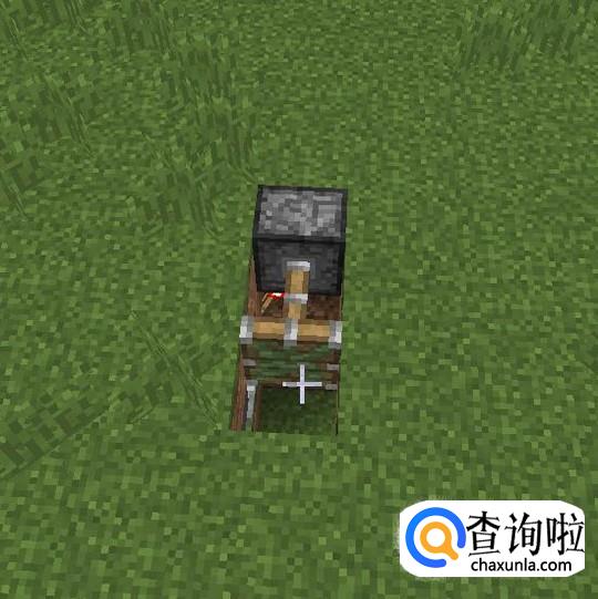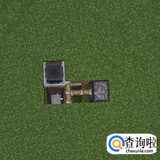 然后在漏斗上方放置一个铁轨,铁轨上面放上一个漏斗矿车。
