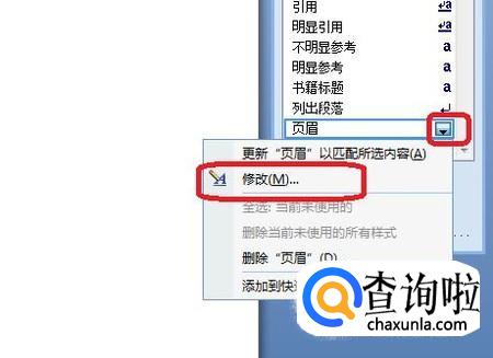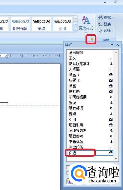 双击页眉区域,进入编辑状态,点击标题栏“开始”,并点击如图所示“样式”按钮,弹出菜单,我们在最底部看到“页眉”。