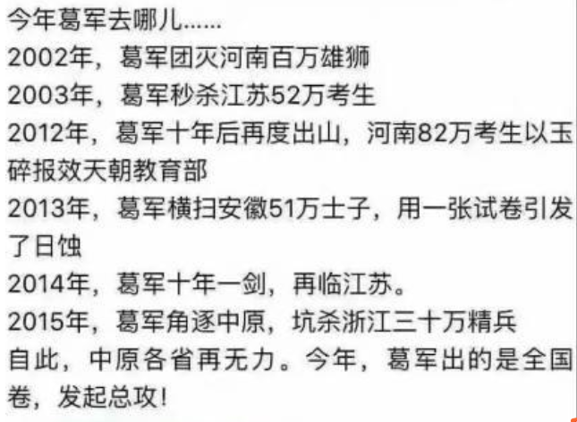 有人说了,参加高考命题有什么可怕的,大家好好考不急的了吗?下面给出一组数据让你见识下葛大爷的威力:
