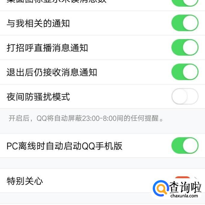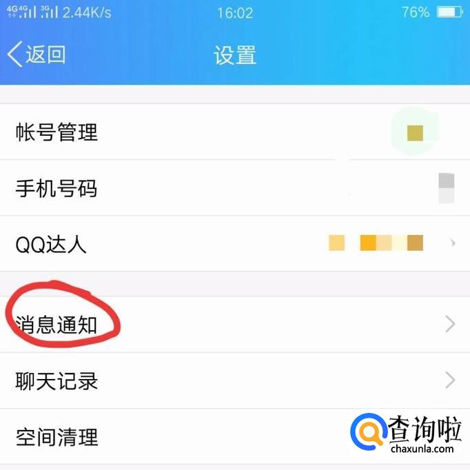 进入QQ设置,点击“消息通知”进行添加特别关心好友的操作,因为特别关心与消息通知有关,所以要进入“消息通知”!