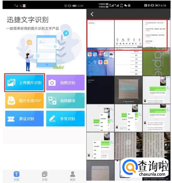 首先在iPhone手机上装个【迅捷文字识别】,装好后,打开工具选择其中的【上传图片识别】功能,之后就会来到图库中。