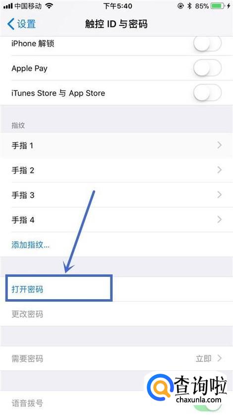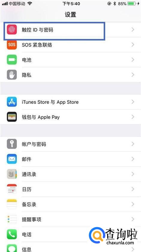 然后点击触控id和密码,如下图所示。