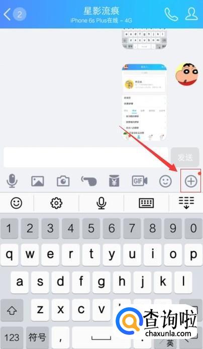 在聊天界面点击左下角圆圈加号如下图所示: