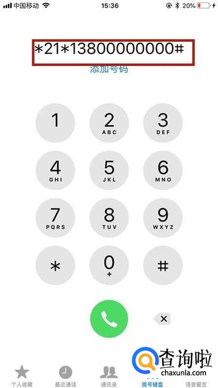 然后输入*21*13800000000#,如下图所示。