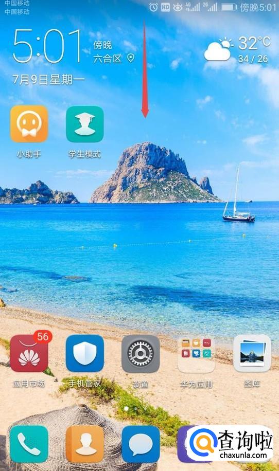 其次,我们还可以打开我们的手机,然后下拉屏幕上方的菜单栏;