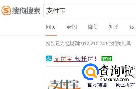 首先在我们的电脑浏览器中输入支付宝并点击它,如下图所示。
