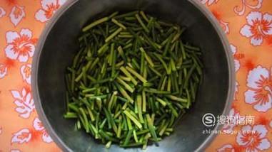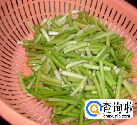 蒜苔洗净,切成段状,放入一旁,沥干水分。
