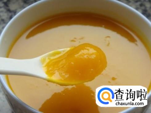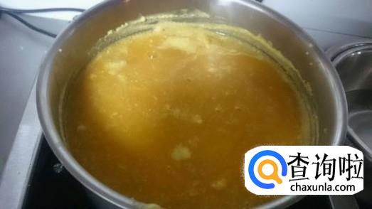 再取一煮锅,加入适量清水,把蒸熟的南瓜块压成瓜泥入锅煮开,再慢慢加入1勺糯米粉,继续煮上10分种,煮成稠状即可。