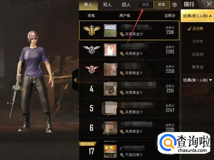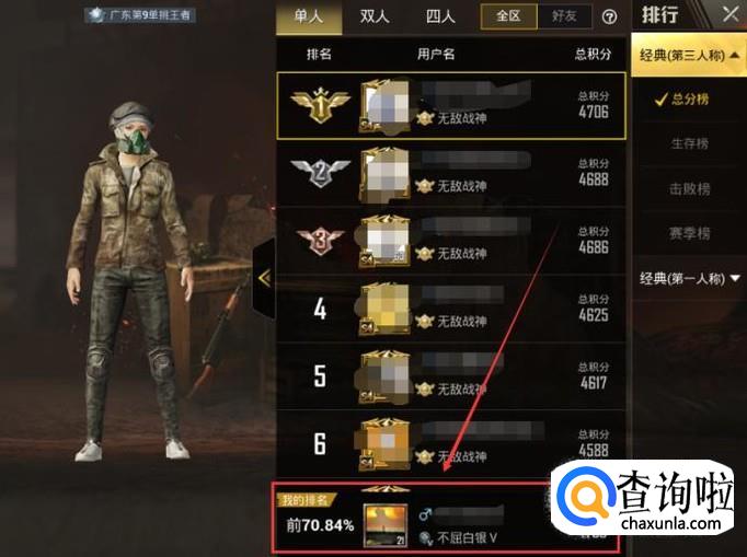 刺激战场怎样看自己的全区排名