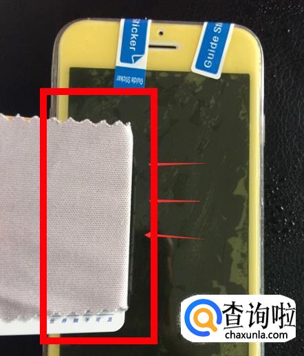 使用除尘贴或是胶带之类的东西将手机屏幕上的浮尘粘掉。以免贴的时候产生小气泡。