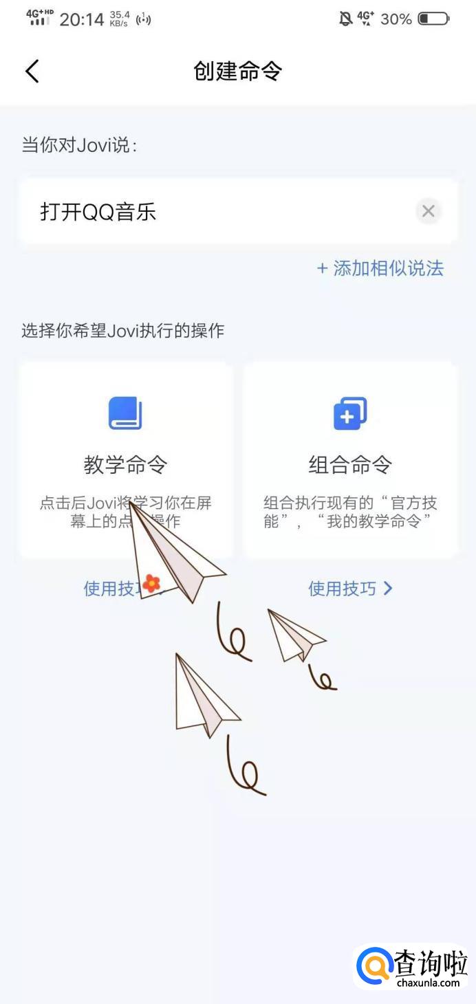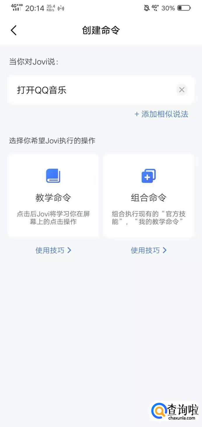 接着在空白处输入你要说的命令语句;【打开QQ音乐】。