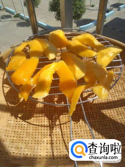 最后把把里面的芒果片取出,一片一片的摆放在晾架上,放置在阴凉通风处或者放入烘干机里面烘烤,晾晒的时候一定要注意阴雨天气要拿到屋里面。