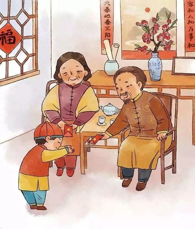 除夕守岁之时,长辈要给晚辈压岁钱,也叫压胜钱。因为“岁”与“祟”谐音,长辈们希望压岁钱能驱邪免灾,保佑孩子平平安安。