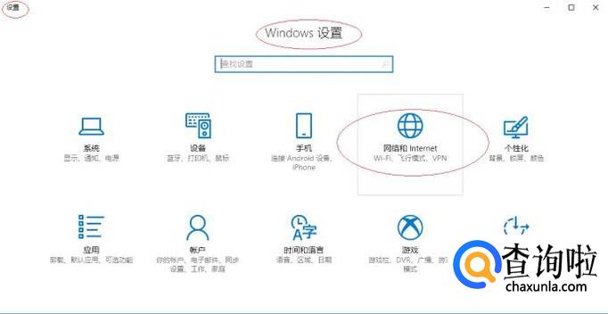 唤出"Windows 设置"程序窗口,如图所示。点击"网络和Internet"图标,用户可以根据自己的喜好和需要对系统进行设置。