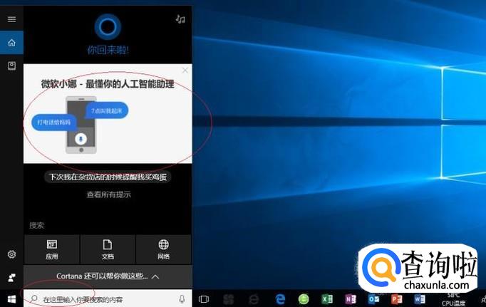 启动Windows 10操作系统,如图所示。点击任务栏搜索框,开始使用Cortana(小娜)智能语音助理。