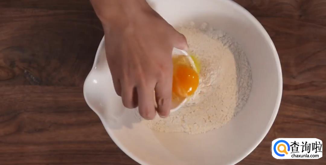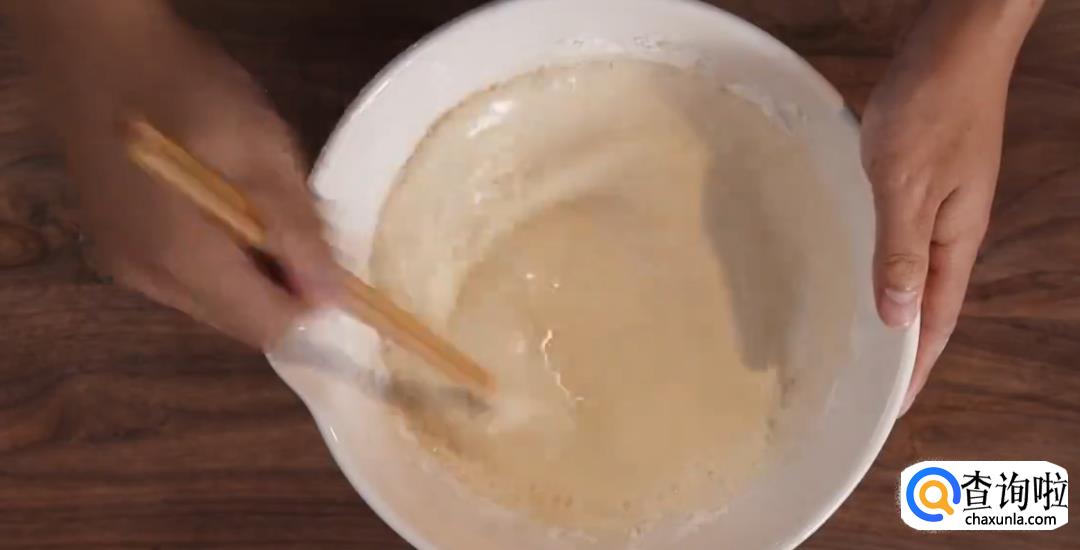 小麦粉中加鸡蛋及适量纯净水,搅拌均匀做成面糊。