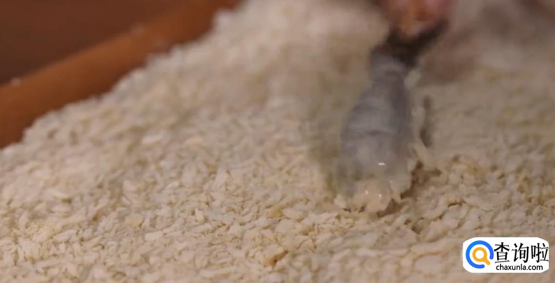 去壳和沙线的基围虾在面糊中蘸一下,再裹上一层面包粉,放入七八成熟的油中,炸2-3分钟,表面金黄即可。