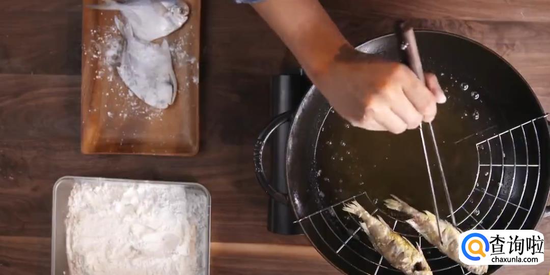 放入七八成熟的油中炸4-5分钟。然后捞出将鱼滤干油,再用九成熟的油复炸一遍,捞出即可。