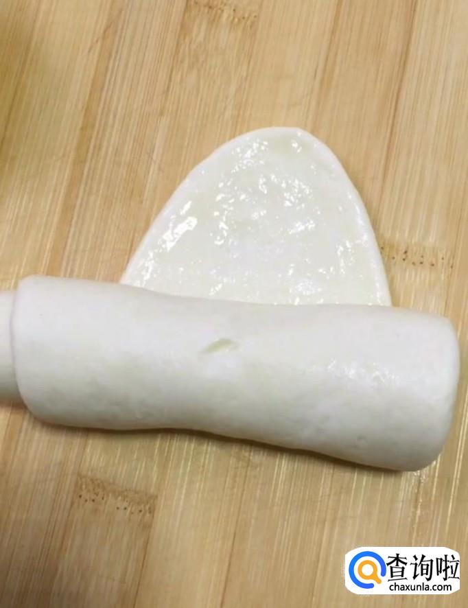 接着我们把小面团用擀面杖擀成长条