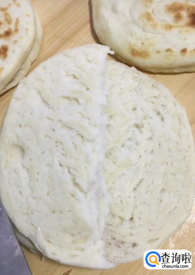 然后我们用刀从中间把饼片开,放上准备好的葱花,香菜,青椒,卤好的猪肉