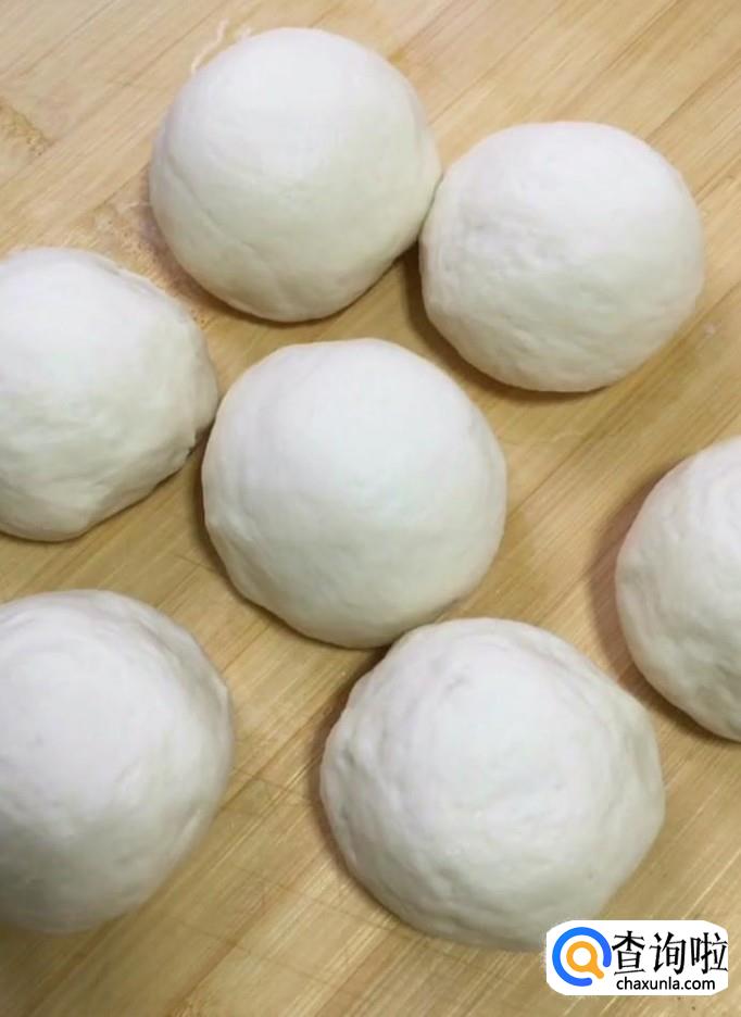 首先,我们将醒发好的面搓成长条,切成块,揉成一个个的小面团