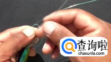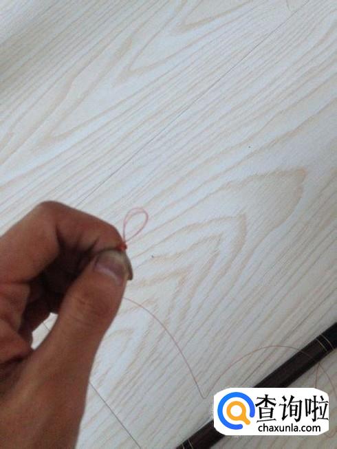 接下来,我们在鱼线顶端大约10厘米处对折并且打一个结实的结。