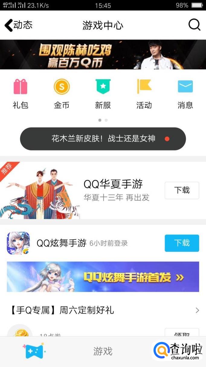 首先进入QQ飞车手游登录的QQ号中,然后点击动态界面,再点击游戏。
