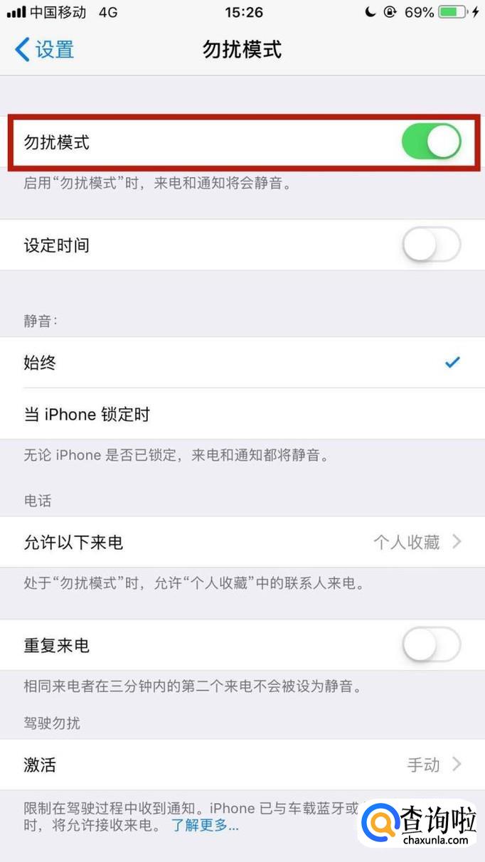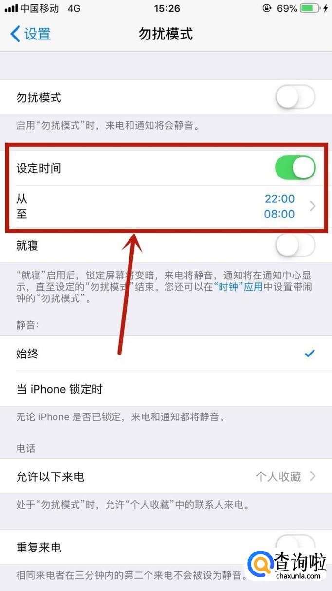 接着点击开启勿扰模式开关,如下图所示。