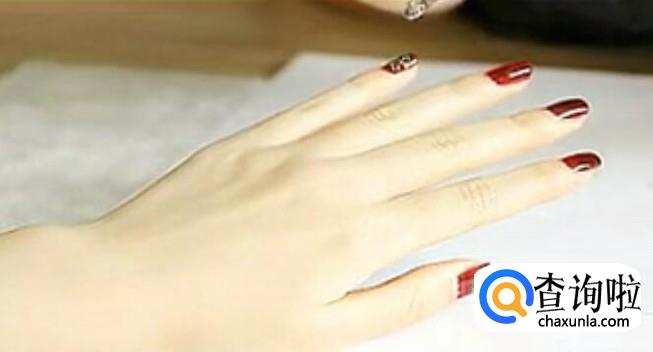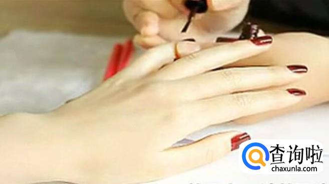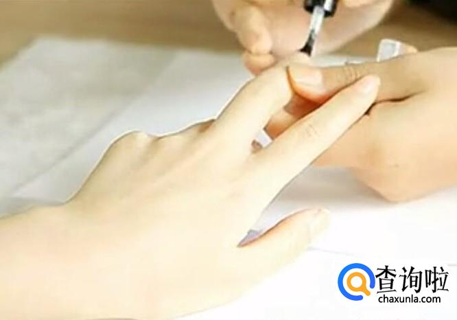 然后涂彩色指甲油,第一遍可以把5个指甲全部涂好了。