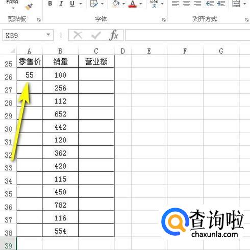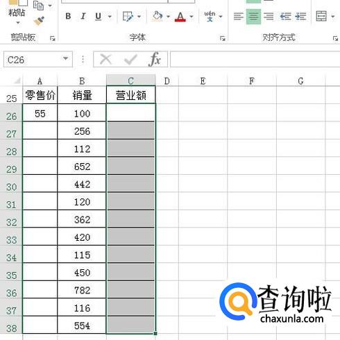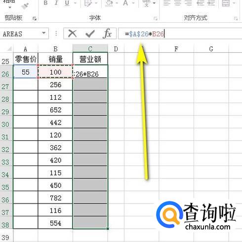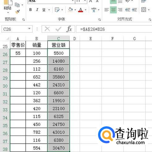 下图中由销量乘以零售价得到营业额;那么,A26单元格内的零售价是固定的。