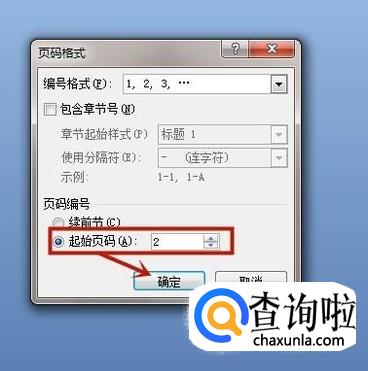 最后把起始页码设定为数字2并点击确定就可以了。你学会了吗?赶快动手试一试吧。